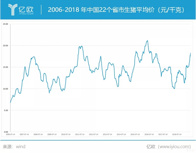 生豬養(yǎng)殖是一個周期性非常強的行業(yè),幾乎每兩年價格都會出現(xiàn)明顯的山峰狀狀波動,并呈循環(huán)之勢。