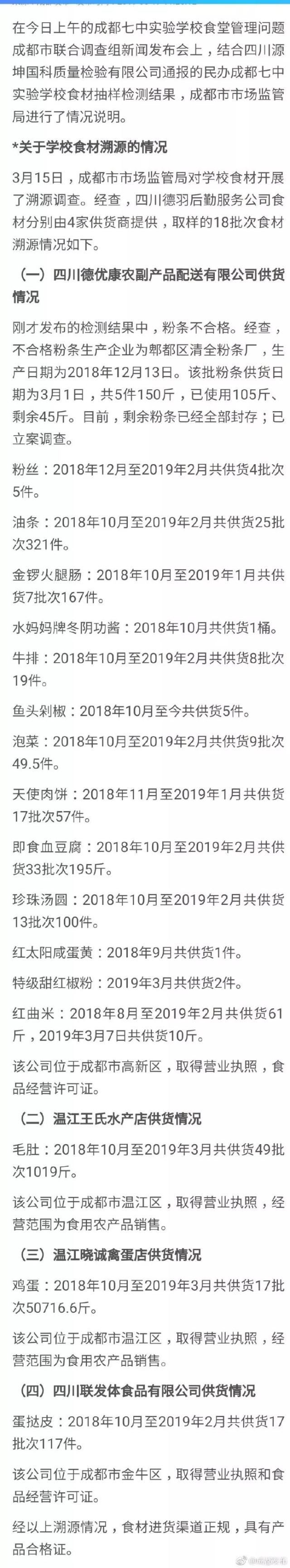 成都市市場監(jiān)管局:溯源情況顯示食材進(jìn)貨渠道正規(guī)、具有產(chǎn)品合格證