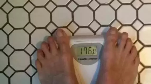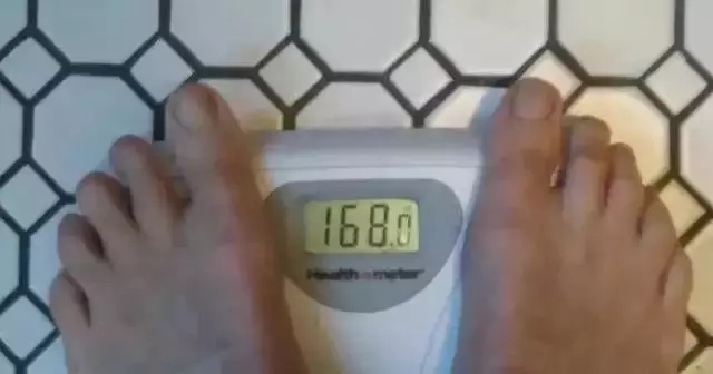 在整個實驗的一開始,他的體重是168磅(76.2公斤)。